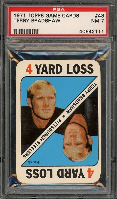 1971 Topps Game Terry Bradshaw RC #43  PSA NM 7 - A condition sensitive card, these Topps Game cards were intended to be handled and played as a game, thus high grade examples are hard to find.