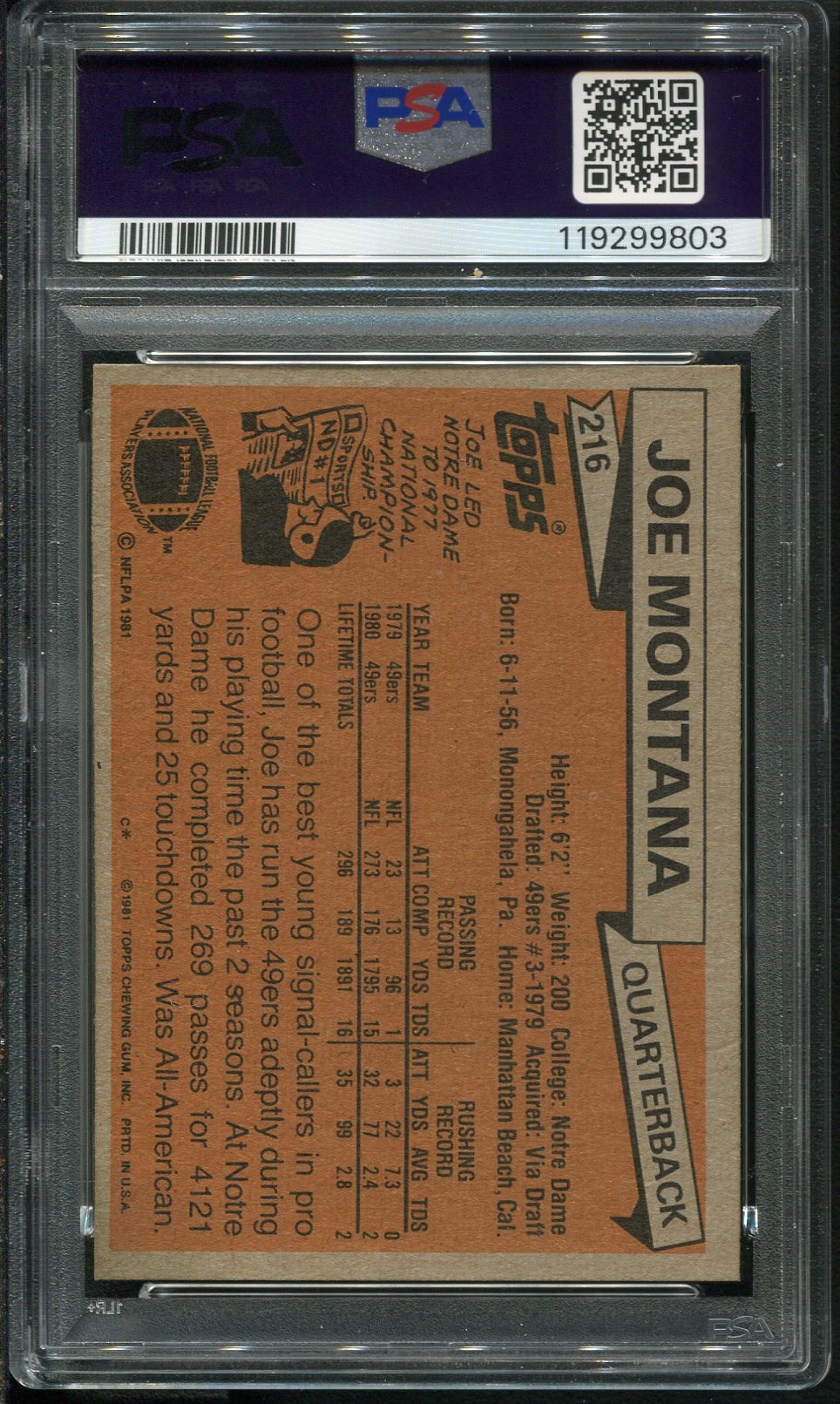 1981 Topps Joe Montana RC #216 PSA NM 7 - A pack fresh card with sharp corners and great registration. Card was recently graded and comes in a new PSA holder.