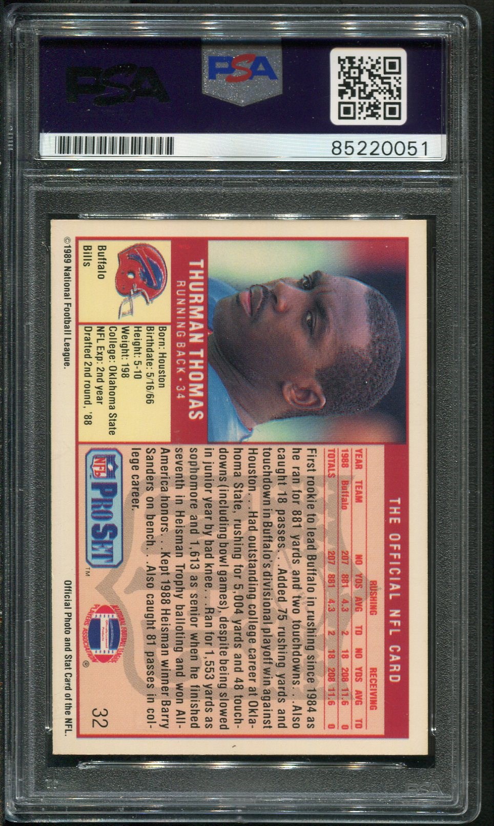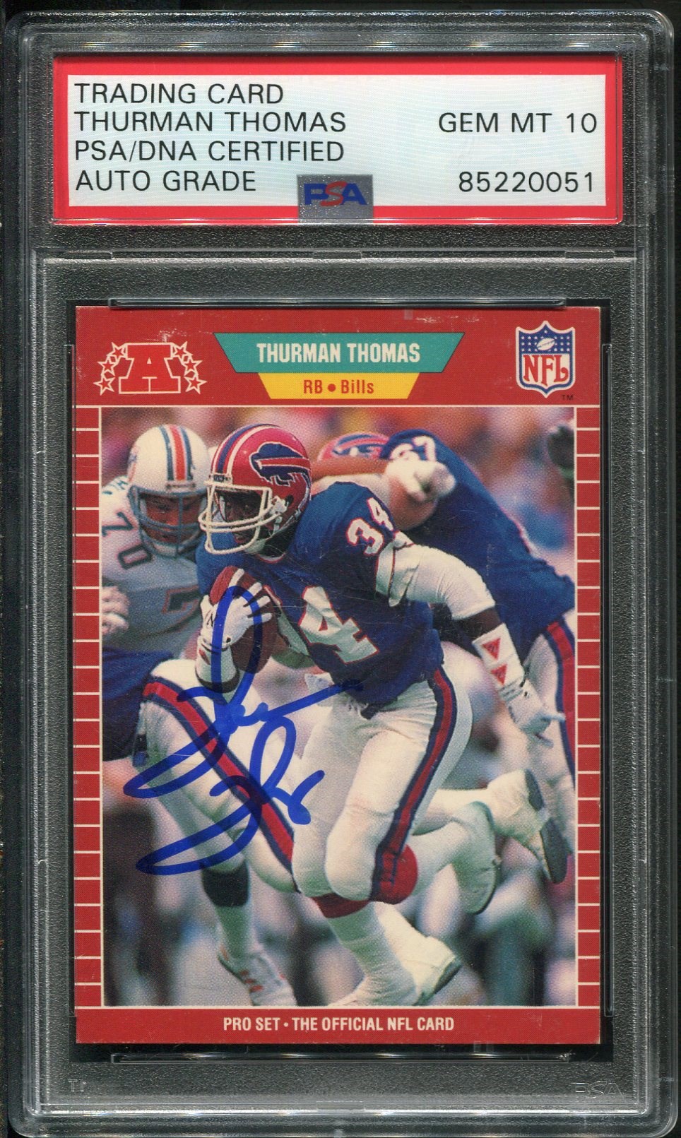1989 Pro Set Thurman Thomas RC #32 Autographed with PSA 10 Auto - Signed by Thomas on his Pro Set rookie card, this is a must have item for the Bills fan.