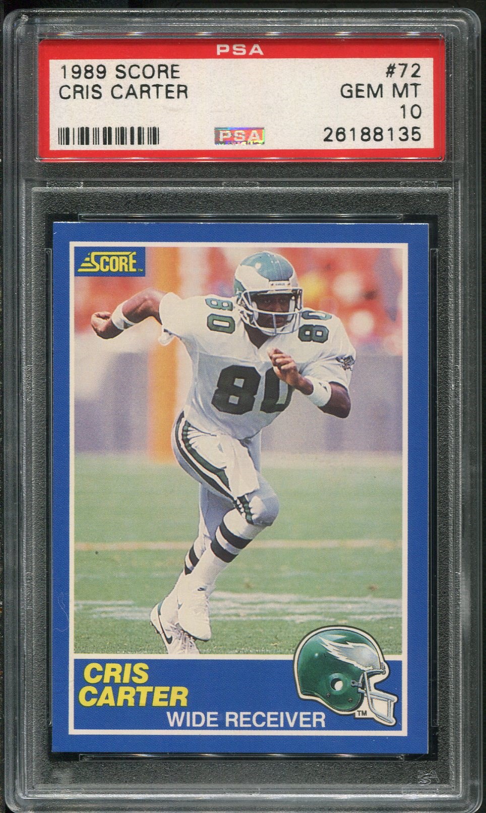 1989 Score Cris Carter RC #72  PSA Gem Mint 10 - This is Carter's best rookie card.  This PSA 10 comes in a scratch free PSA holder.