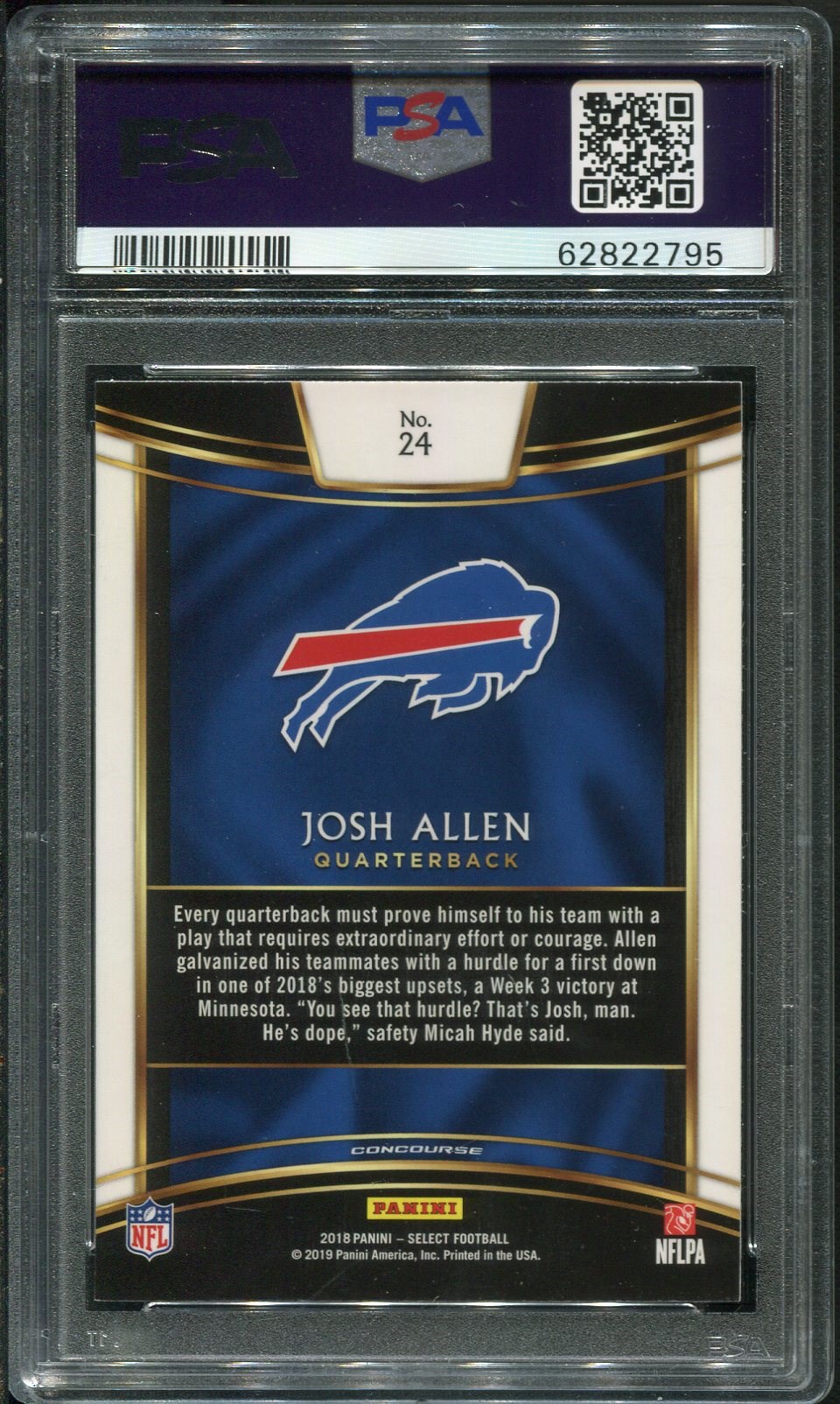 2018 Panini Select Concourse Josh Allen RC #24 PSA Gem Mint 10 - A hot rookie of Allen that comes in a scratch free PSA holder.