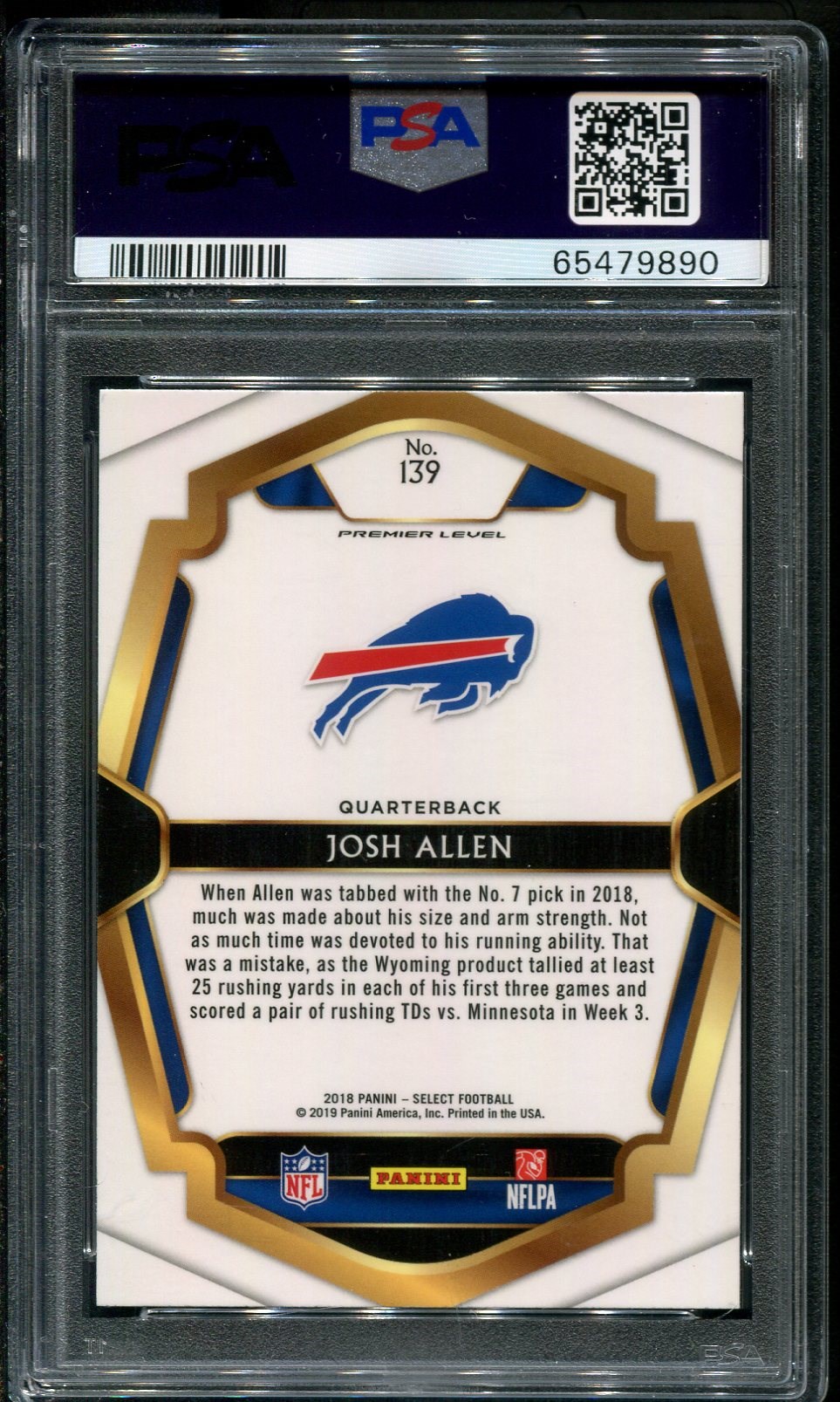 2018 Panini Select Premier Level Josh Allen RC #139 PSA Gem Mint 10 - A highly desirable rookie of Josh Allen in PSA 10 grade.