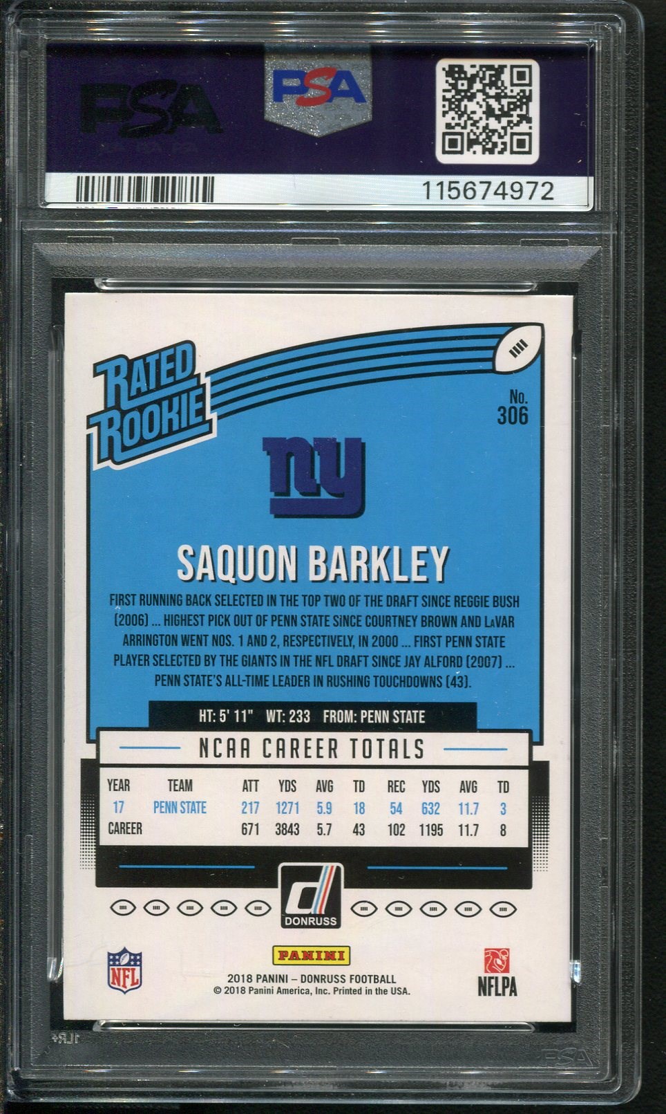2018 Panini Donruss Saquon Barkley RC #306 PSA Gem Mint 10 - Card was recently graded and comes in a new PSA holder.