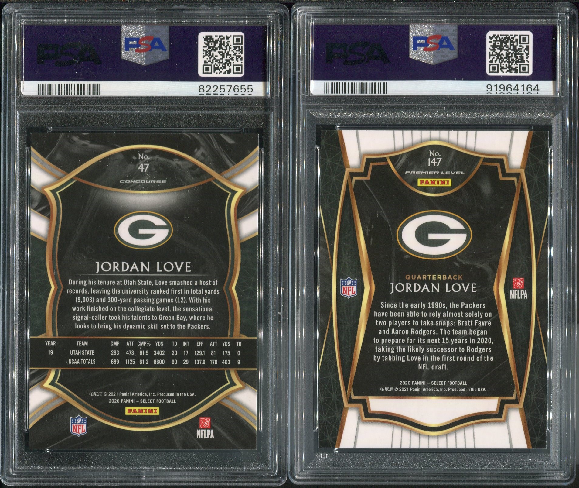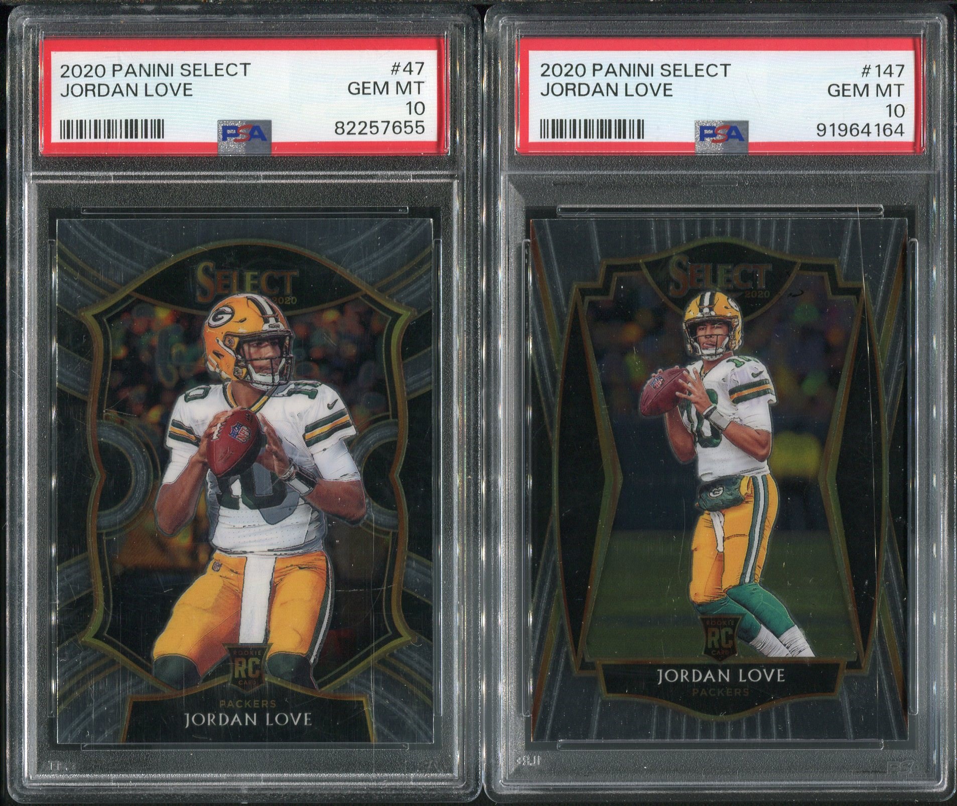 Jordan Love Lot of 2020 Panini Select RC #47 and Panini Select RC #147  Both in PSA Gem Mint 10's