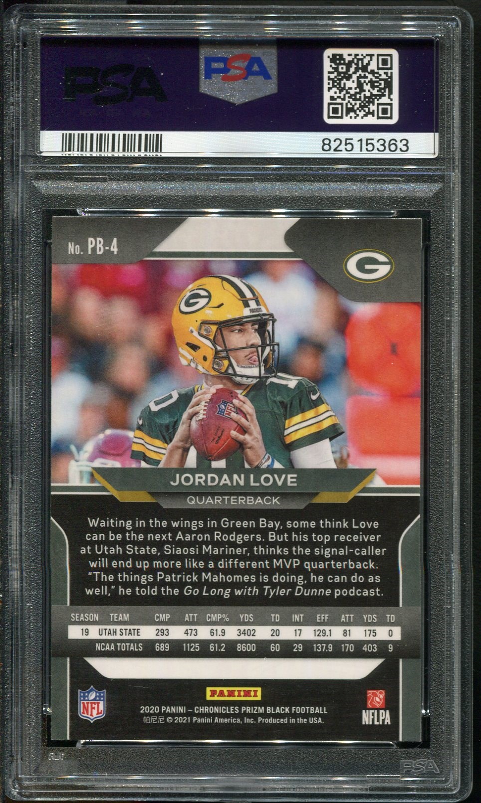 2020 Panini Chronicles Prizm Black Jordan Love RC #PB4 PSA Gem Mint 10 - Love continues to improve every season. He has led the Packers to several big wins this season. Card comes in a scratch free PSA holder.