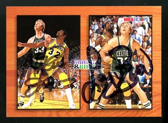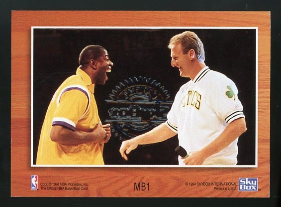 1994 Skybox Magic Johnson/Larry Bird Dual Autograph #MB1 - Dual, on card, signatures of Bird and Magic certified by Skybox. Card is problem free and in NM or better condition.