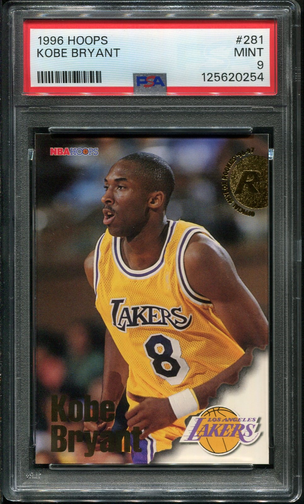 1996 Hoops Kobe Bryant RC #281 PSA Mint 9 - Mint Kobe rookie cards are in high demand. Card was recently graded and comes in a new PSA holder.