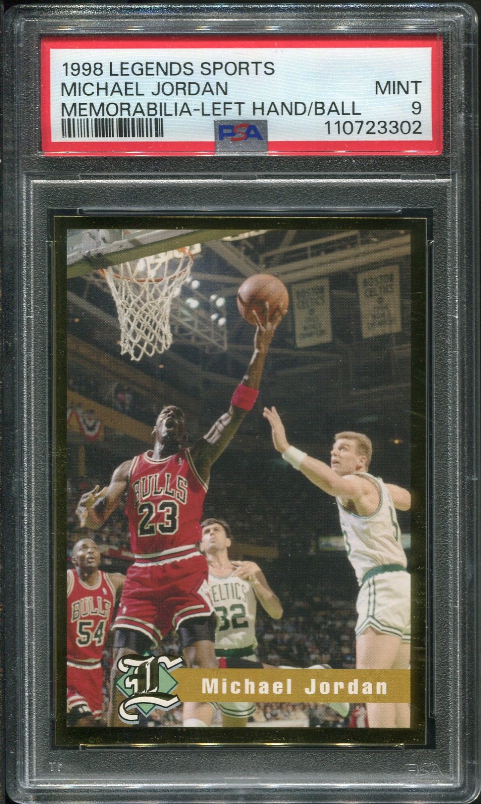 1998 Legends Sports Michael Jordan Ball in Left Hand PSA Mint 9 (Pop 5) - A rare card of Michael Jordan with just 5 PSA 9's in existence, no 10's, and just 9 in the total population.  Here is your chance to own one, so don't let it get away!
