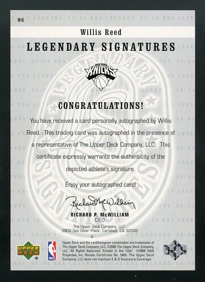 2000 Upper Deck Century Legends Willis Reed Legendary Signatures #WR - Both the card and signature are NM/MT.