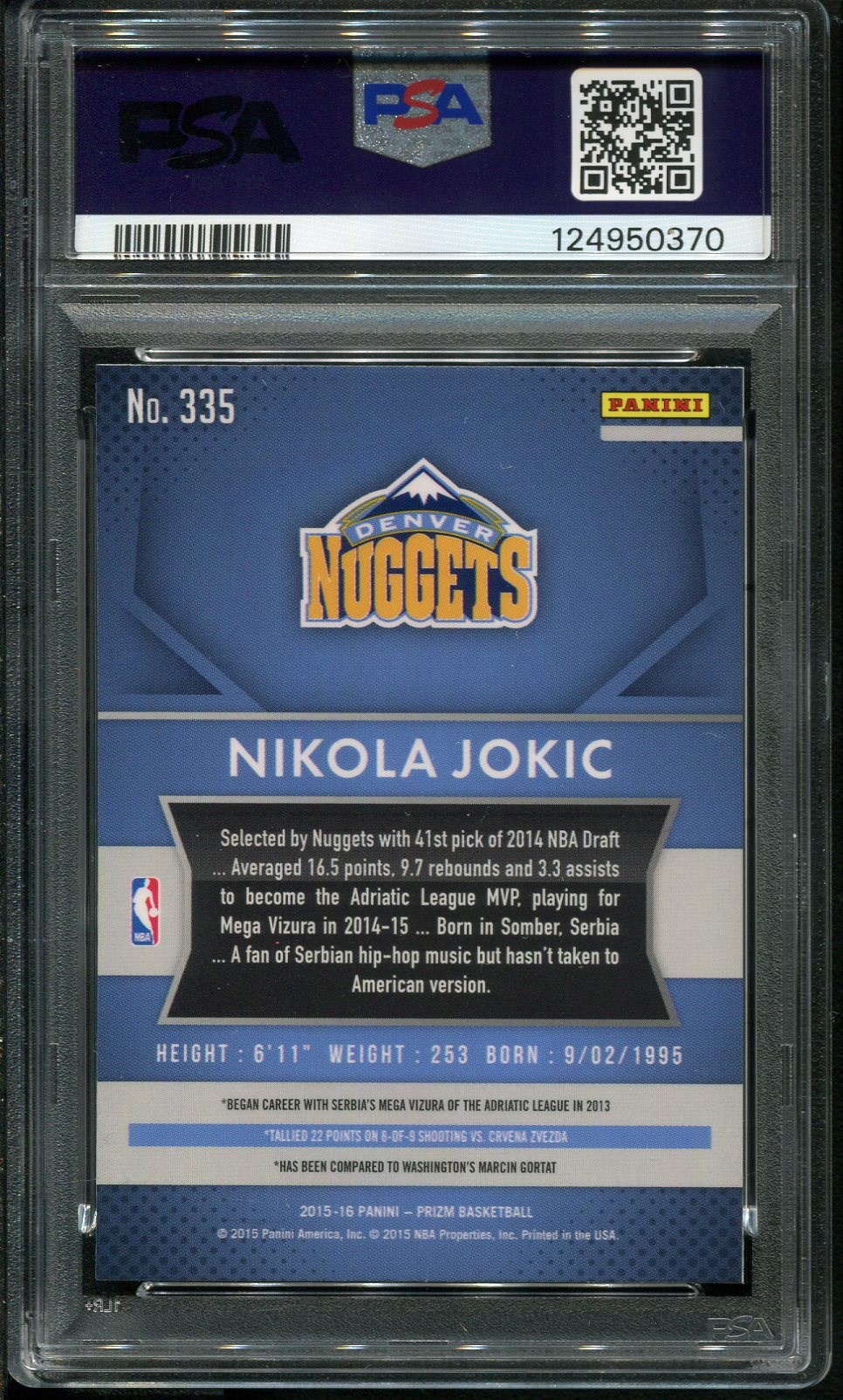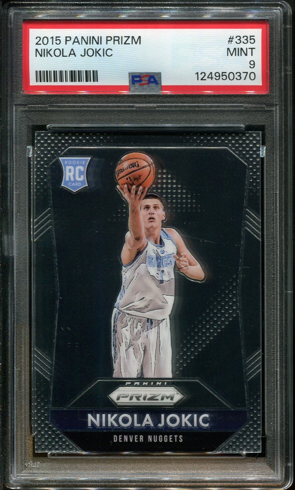 2015 Panini Prizm Nikola Jokic RC #335 PSA Mint 9 - Jokic's Prizm rookie is his best base rookie card to own. Grab this nice PSA Mint 9 card before it is gone.