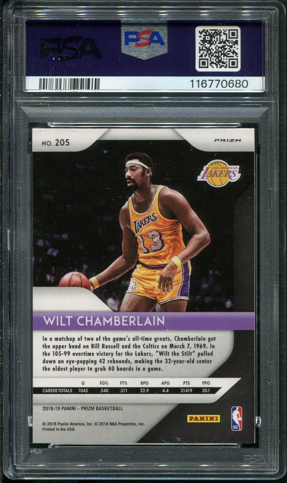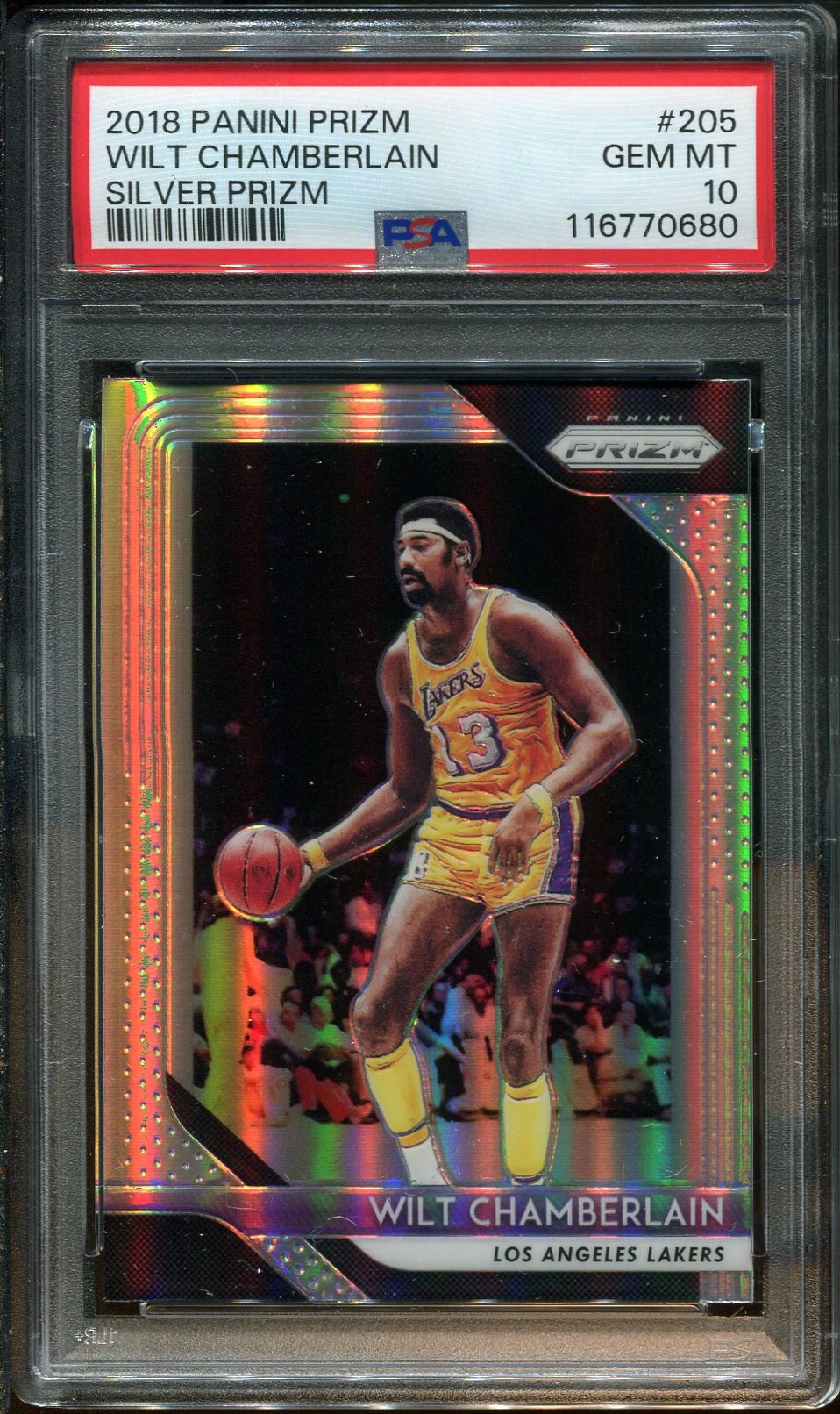 2018 Panini Prizm Wilt Chamberlain Silver Prizm #205 PSA Gem Mint 10 - Recently graded and in a new PSA holder.
