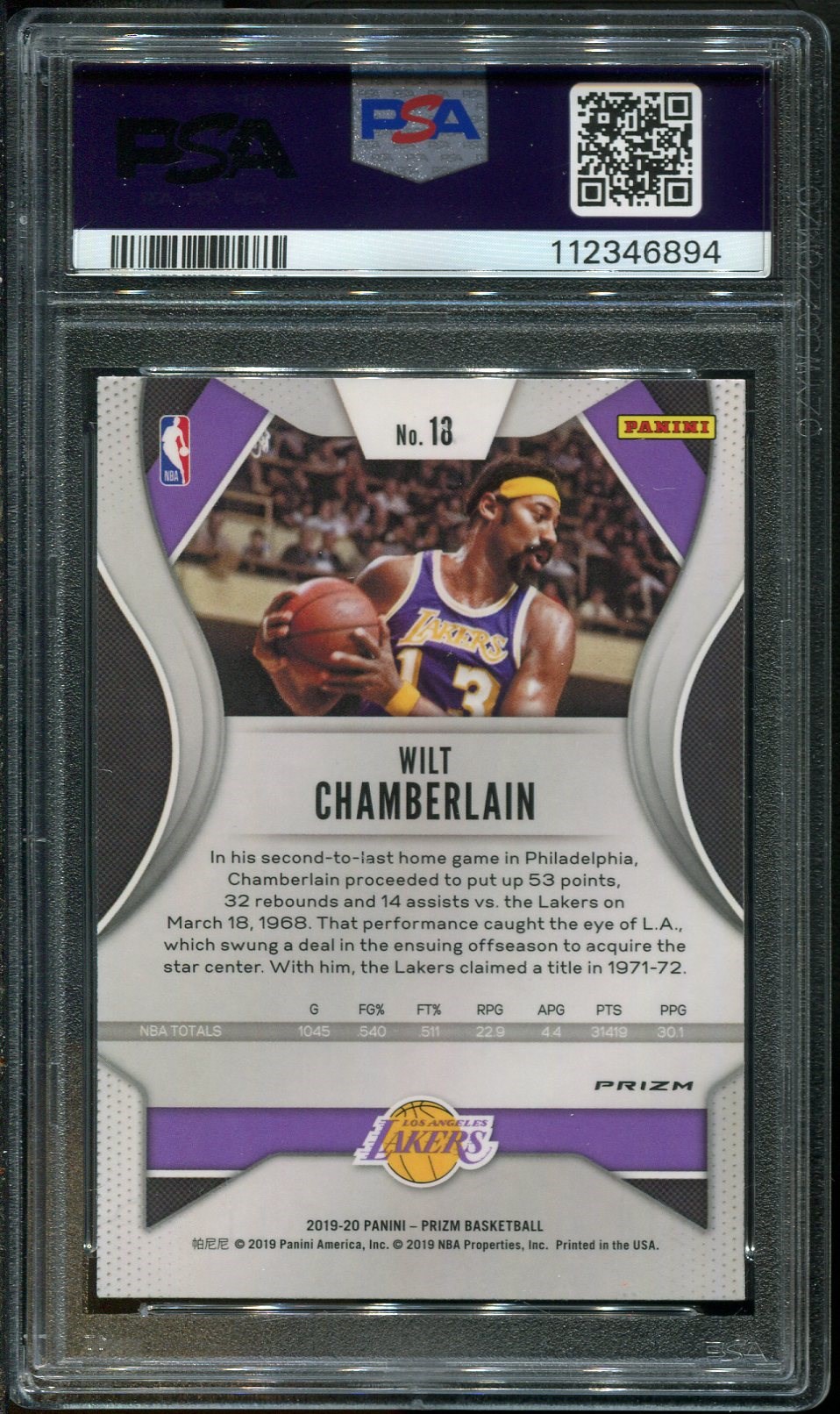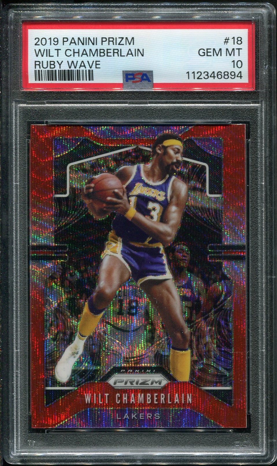 2019 Panini Prizm Wilt Chamberlain Ruby Wave Prizm #18 PSA Gem Mint 10 (Pop 15) - A great Ruby Wave design makes this a very attractive Chamberlain card to own.