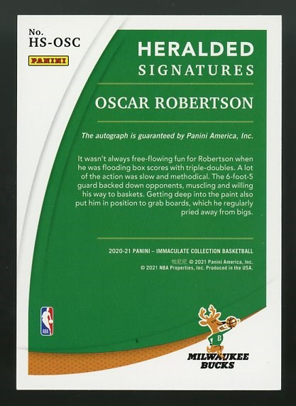 2020 Panini Immaculate Collection Oscar Robertson Heralded Signatures #'d/75 - An NBA legend, "The Big O" is a must have autograph for the basketball collector. Don't miss out! NM/MT