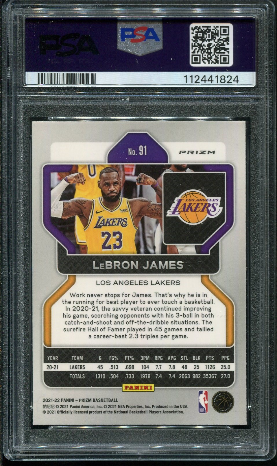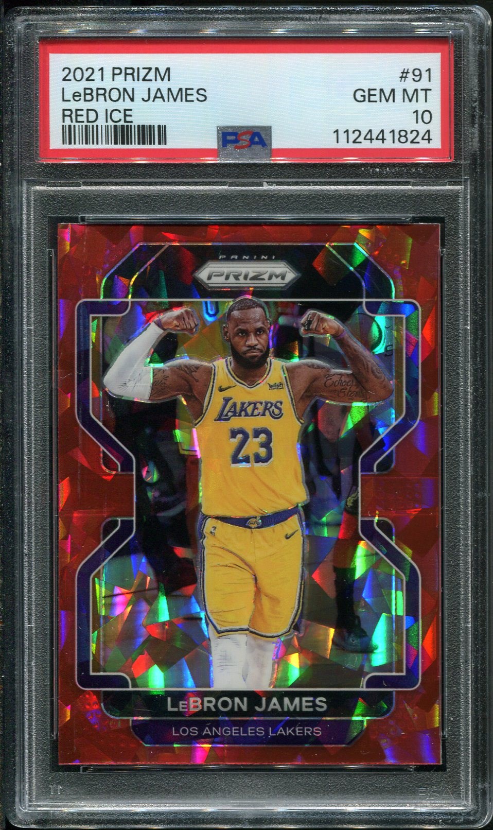 2021 Panini Prizm LeBron James Red Ice Prizm #91 PSA Gem Mint 10 - This great looking Red Ice Prizm is a must for the LeBron collector.