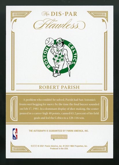 2021 Panini Flawless Robert Parish Distinguished Signatures #'d/25 - An on card autograph of Hall of Famer Robert Parish, serial numbered out of just 25 produced. NM/MT