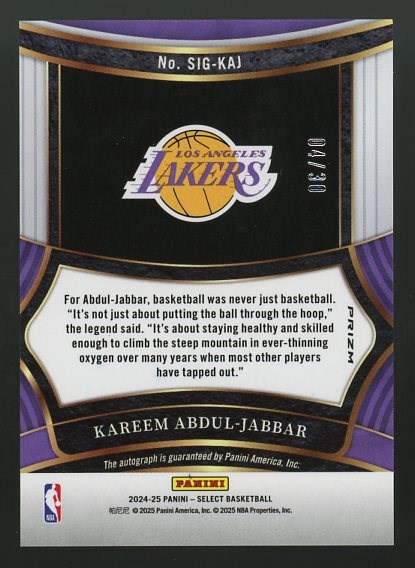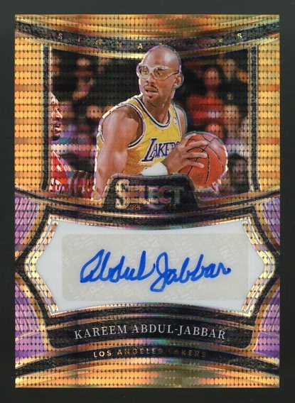 2024 Panini Select Kareem Abdul-Jabbar Orange Pulsar Prizm Autograph #SIG-KAJ #'d/30 - A highly attractive card of an all-time NBA great, this Jabbar Pulsar Prizm is limited to just 30 made. NM/MT