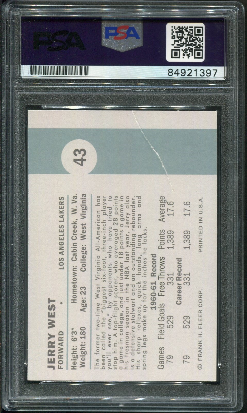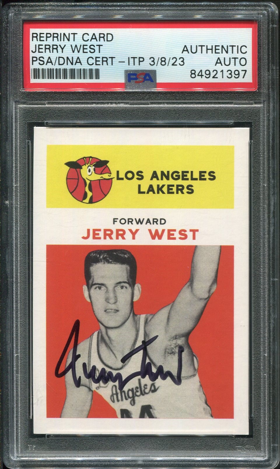 Jerry West 1961 Fleer Reprint #43 Autographed PSA/DNA ITP Authentic - Signed in bold, black sharpie by legendary HOFer Jerry West, in the presence of a PSA representative on 3/8/23. Card and signature are mint!