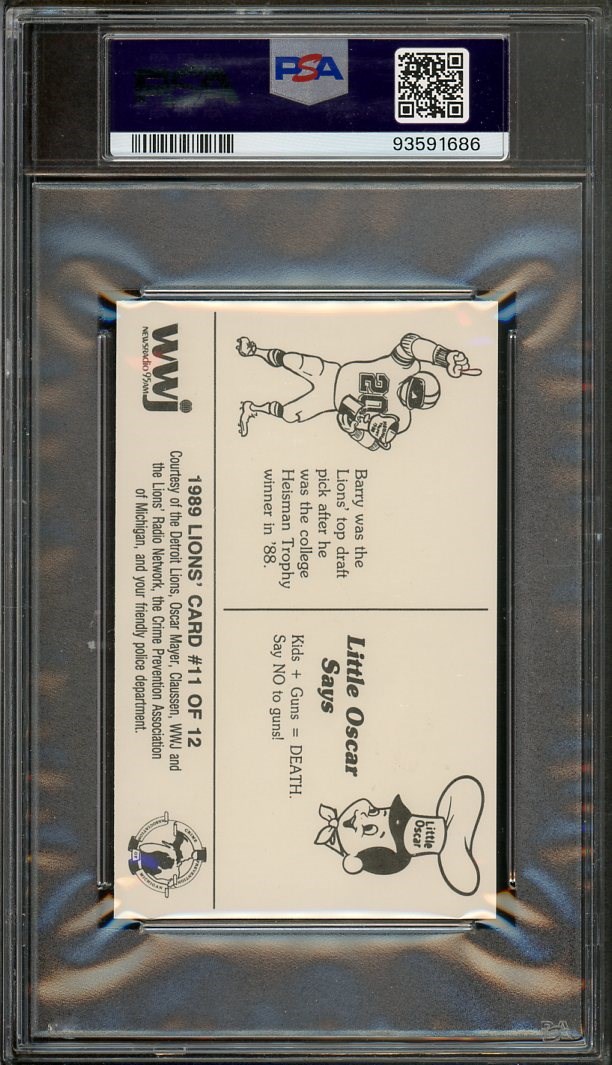 Lot # 393: 1989 Lions Police Barry Sanders RC #11 PSA Mint 9