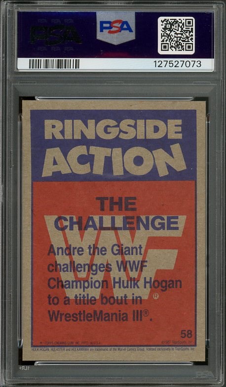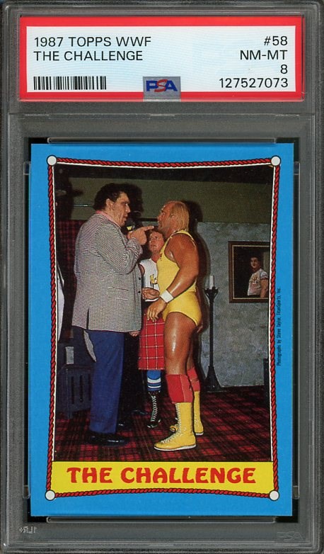 1987 Topps WWF "The Challenge" Hulk Hogan/Andre the Giant #58 PSA NM/MT 8 - A great card featuring two of the most popular wrestlers of the 1980's.
