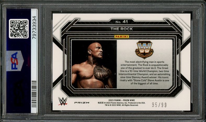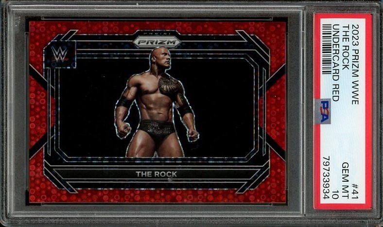 2023 Panini Prizm WWE "The ROCK" Dwayne Johnson #41 Undercard Red Prizm #'d/99 PSA Gem Mint 10 - The Rock has been the most successful wrestler to cross over to movie actor, becoming the box office superstar that he is today.