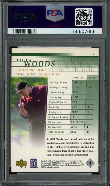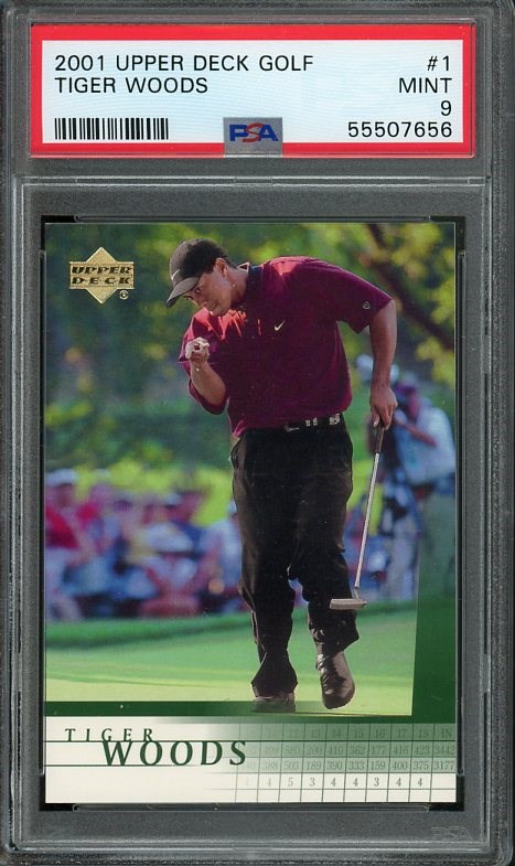 2001 Upper Deck Tiger Woods RC #1 PSA Mint 9 - This is Woods' first rookie card available in pack form and a must for any Tiger collector.
