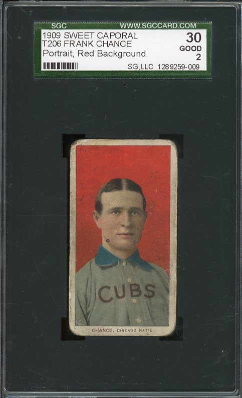 1909-11 T206 Frank Chance (Portrait, Red Background) SGC Good 2 - This Chance portrait features the tougher, red background version. Graded a Good 2 by SGC and comes in a scratch free holder.