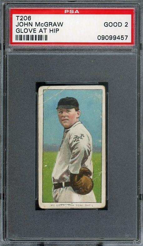 1909-11 T206 John McGraw (Glove at Hip)  PSA Good 2 - Here is HOFer McGraw's "Glove at Hip" issue in PSA Good 2 grade.  Card comes in a scratch free PSA holder.