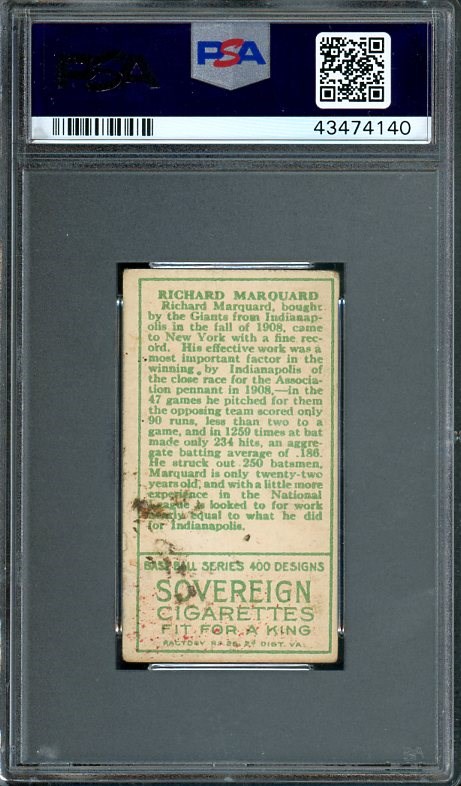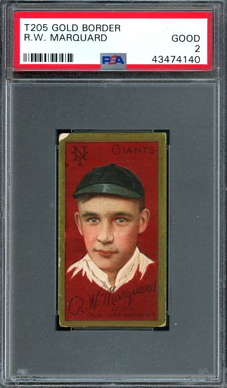 1911 T205 Gold Border Rube Marquard PSA Good 2 - From 1911 to 1913, Marquard won at least 23 games each season, and helped the Giants win three consecutive National League pennants. He was inducted to the HOF?in 1971.