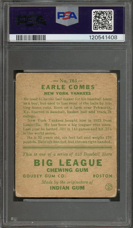 1933 Goudey Earle Combs #103  PSA Good 2 - Combs played his entire career with the Yankees and was one of the members of the famous “Murderers’ Row” team of 1927. A?career .325 hitter, he was elected to the HOF?in 1970.