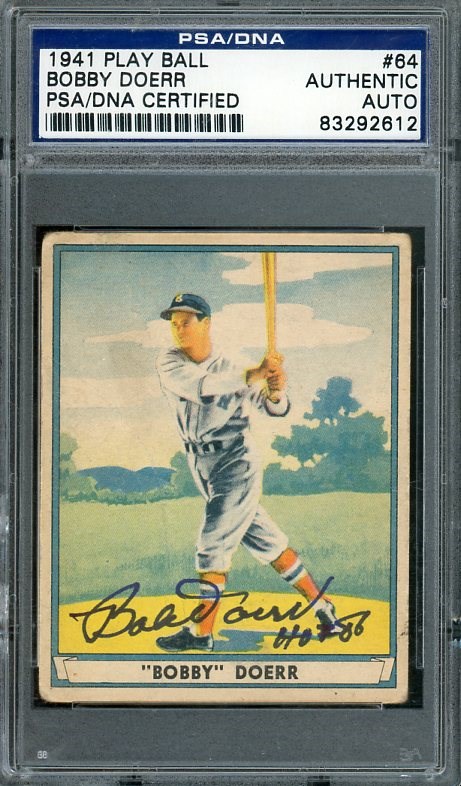 1941 Play Ball Bobby Doerr #64 Autographed  PSA/DNA Authentic - Neatly signed at the bottom of his 1941 Play Ball card, Doerr added his "HOF '86" inscription.  A great looking signature on a well centered card.