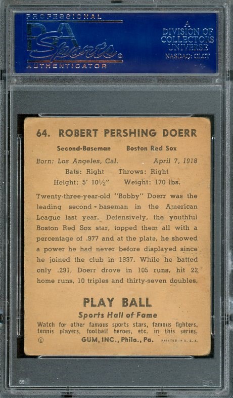 Lot # 80: 1941 Play Ball Bobby Doerr #64 Autographed PSA/DNA Authentic