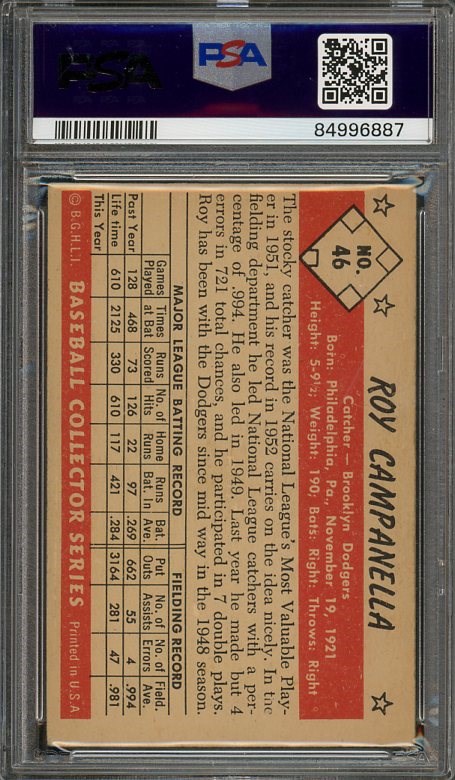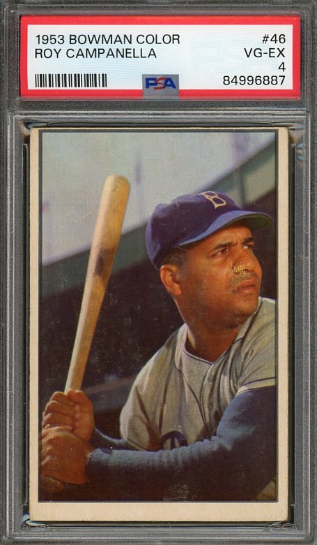 1953 Bowman Roy Campanella #46  PSA VG/EX 4 - Card is crease free but is off center top to bottom.  Card comes in a scratch free PSA holder.