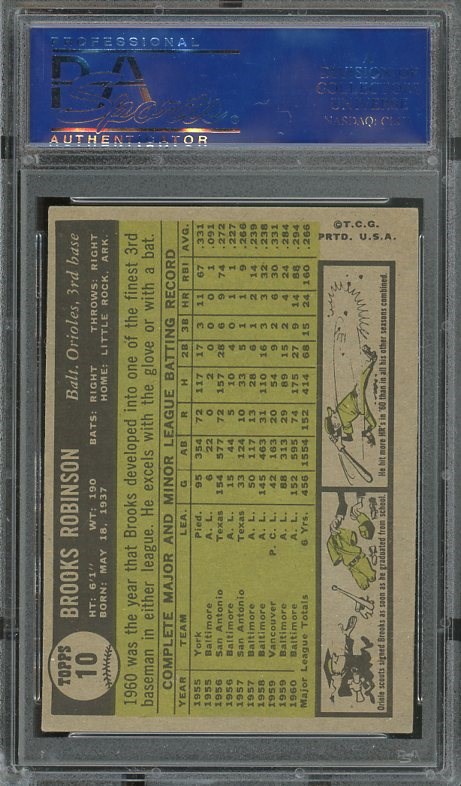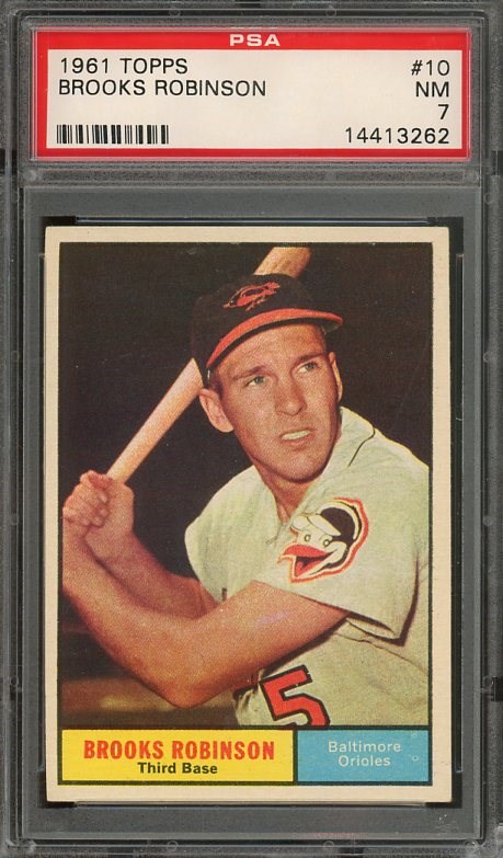 1961 Topps Brooks Robinson #10 PSA NM 7 - This card has great centering and strong corners and is well deserving of the PSA NM 7 grade. A clean card that would look great in a high end 1961 set.