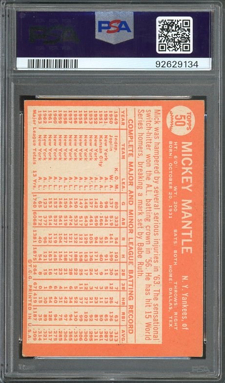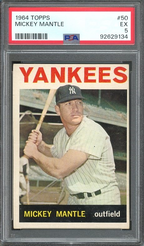 1964 Topps Mickey Mantle #50 PSA EX 5 - A sharp card free of major flaws. The card would have received a much higher grade if it were better centered. Card comes in a new PSA holder.