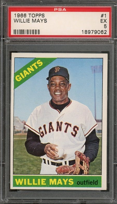 1966 Topps Willie Mays #1  PSA EX 5 - A condition sensitive card, this Willie Mays has great color and registration with corner wear and some centering issues.