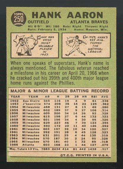 Lot # 221: 1967 Topps Hank Aaron #250