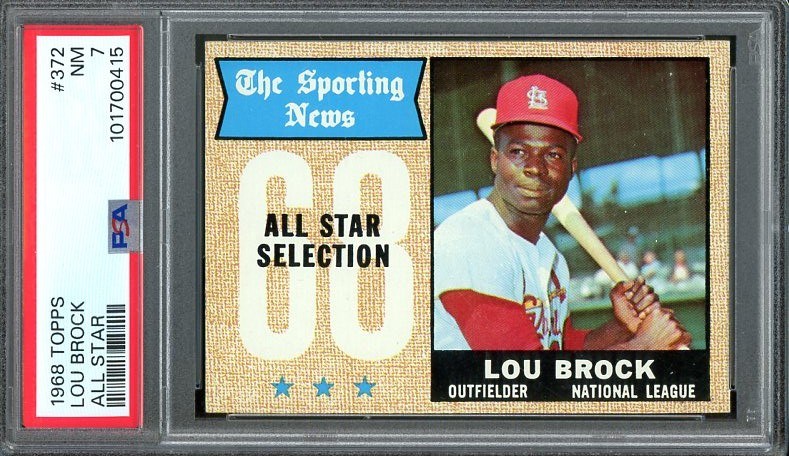 1968 Topps Lou Brock All-Star #372 PSA NM 7 - A clean card in near mint condition. Card is deserving of the PSA NM 7 grade and comes in a scratch free PSA holder.