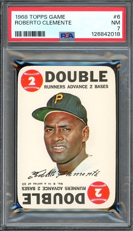 1968 Topps Game Roberto Clemente #6  PSA NM 7 - A very clean card with a nice white background and very little edge wear.  A high end PSA 7.