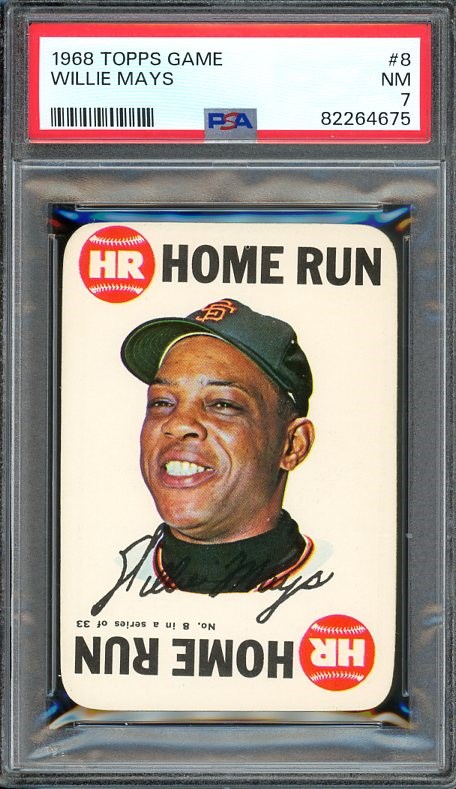1968 Topps Game Willie Mays #8  PSA NM 7 - A pack fresh card with amazing color and edges.  Card comes in a scratch free PSA holder.