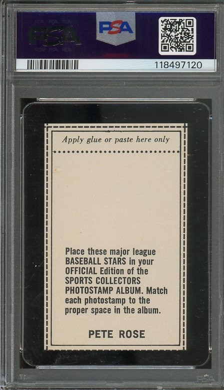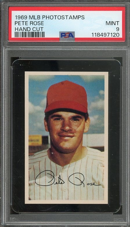 1969 MLB Photostamps Pete Rose PSA MINT 9 - Centered and sharp, this one is mint in every way. Card was recently graded and comes in a new PSA holder.