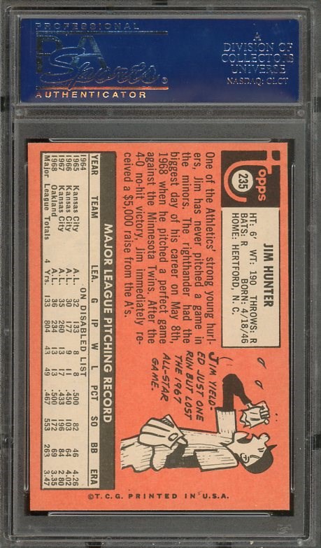 1969 Topps Jim Hunter #235  PSA NM/MT 8 - Card has great corners and original color.  Card comes in a scratch free PSA holder.