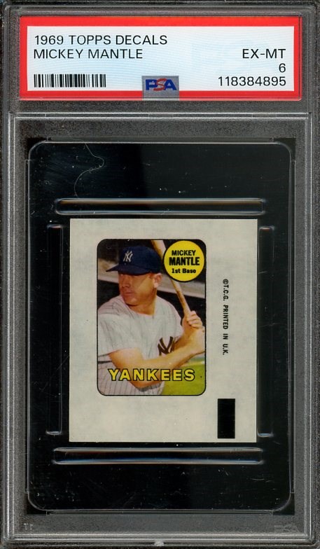 1969 Topps Decals Mickey Mantle PSA EX/MT 6 - Here is an attractive Mantle card that doesn't break the bank. This one has great eye appeal in PSA's new custom holder designed specifically for the 1969 decals.