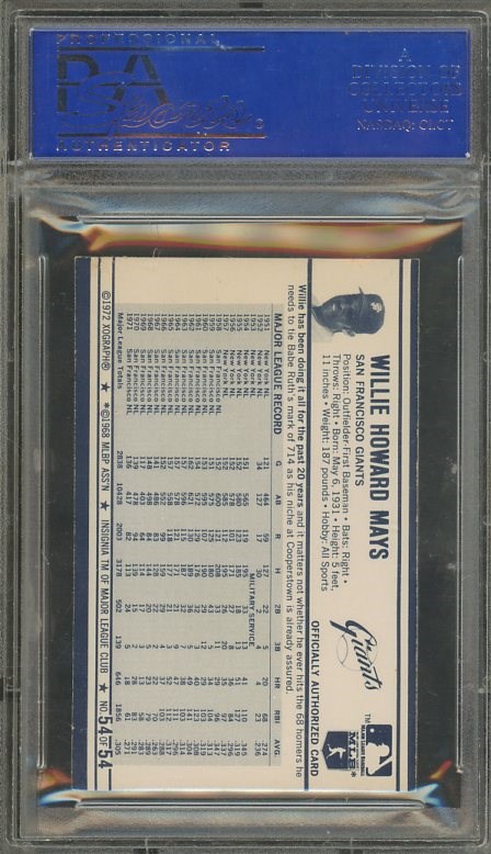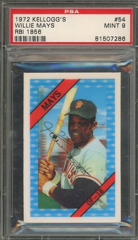 1972 Kellogg's Willie Mays #54 (RBI 1856) PSA MINT 9 - A mint card with great centering and original color, and nice white borders too.