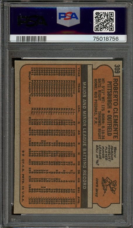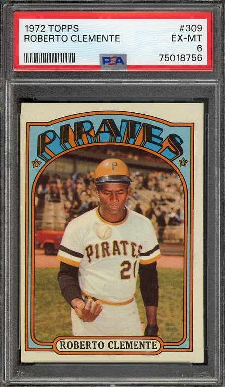 1972 Topps Roberto Clemente #309  PSA EX/MT 6 - Card has great corners, color and registration.  This one would grade even higher if it were slightly better centered.