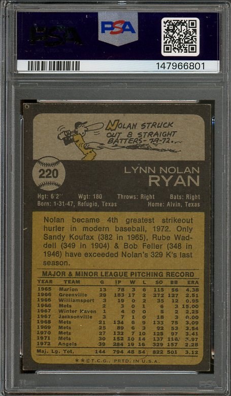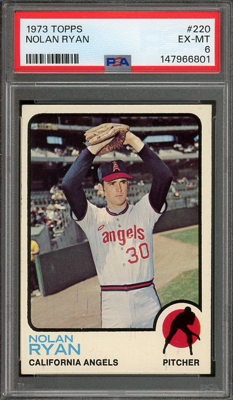 1973 Topps Nolan Ryan #220 PSA EX/MT 6 - Zoom in on the scan of this 1973 Ryan. This card has several near mint qualities, but was assigned an EX/MT 6 grade by PSA. Definitely a high end six!