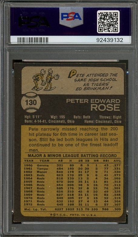 1973 Topps Pete Rose #130  PSA EX 5 - A mid grade card only because of centering.  The rest of the card looks near mint!