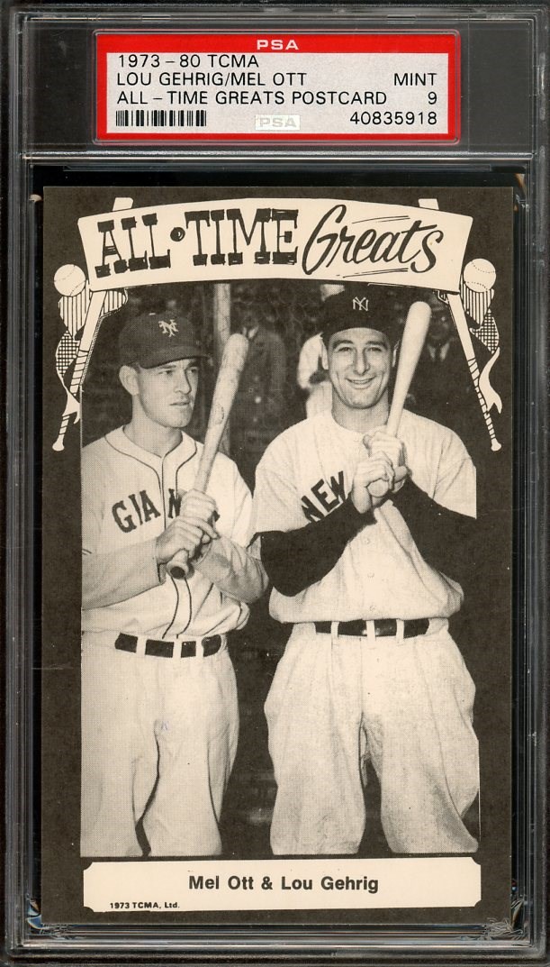 1973-80 TCMA Lou Gehrig/Mel Ott ATG PSA MINT 9 (Pop 2) - These are condition sensitive, due to their size and dark borders. This high grade, PSA Mint 9 card has a population of only two and features two of the all-time greats!