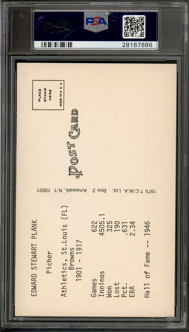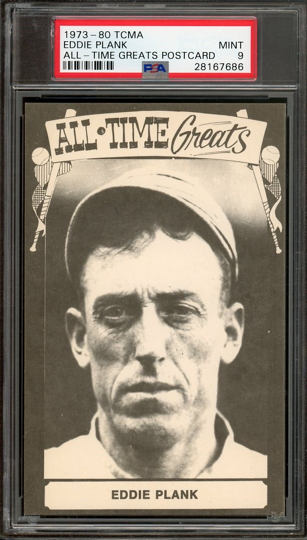 1973-80 TCMA Eddie Plank ATG PSA MINT 9 (Pop 1) - A pop 1 card with none higher. This is the highest graded one on the planet, so if you like Eddie Plank, this is your one chance to own it!