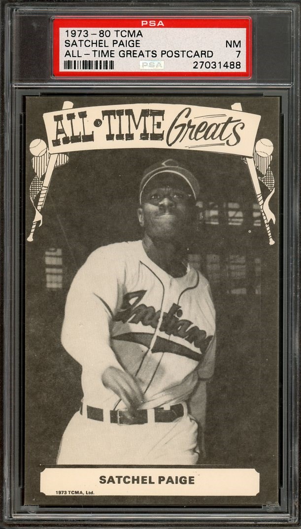 1973-80 TCMA Satchel Paige ATG PSA NM 7 (Pop 2) - This card is a pop 2 in PSA 7 grade, with only three graded higher than this one. Paige cards are always in demand, so keep your eye on this lot!