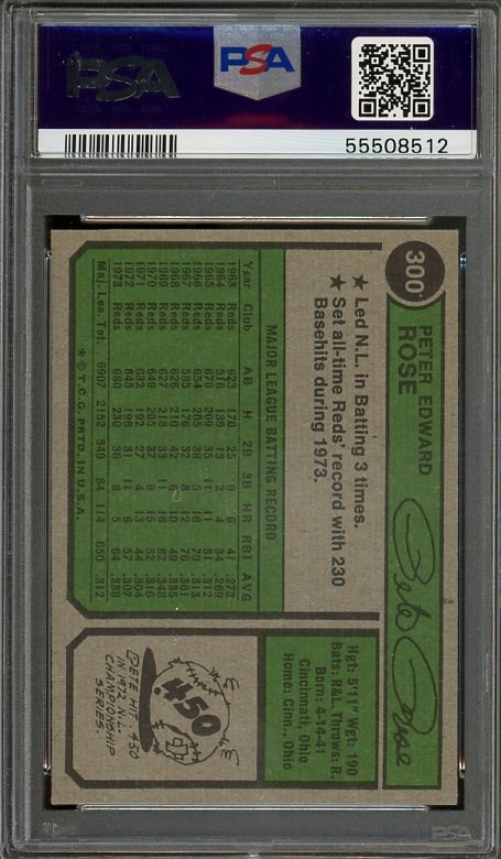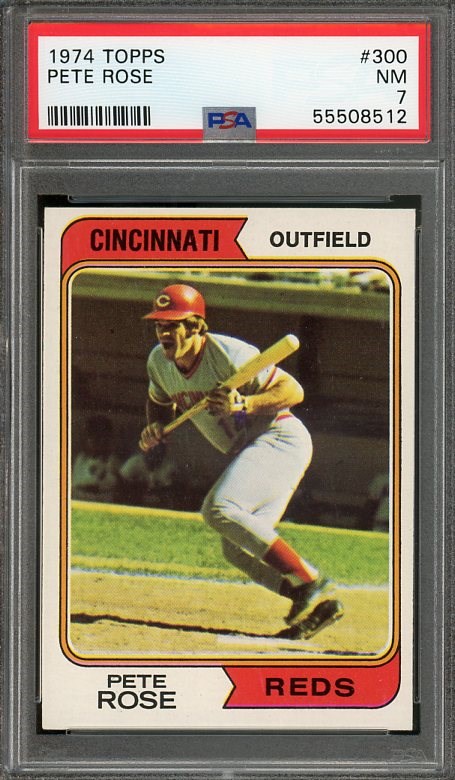 1974 Topps Pete Rose #300 PSA NM 7 - Card has exceptional corners and near perfect registration. A nice, near mint card to add to your collection.